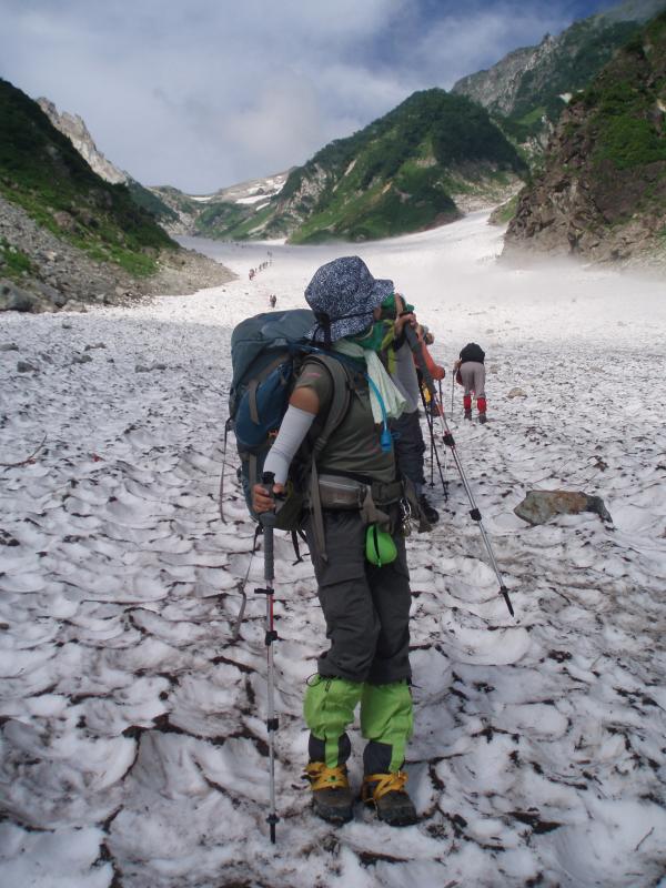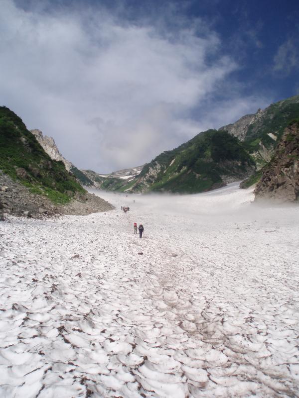 大雪渓はアイゼン・ストックがあるとかなり楽に下れます。また、落石には気をつけましょう!