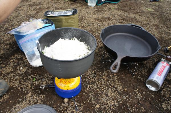 ザックからは重い調理器具に食材がわんさかと出てきたのはビックリでした(@o@)