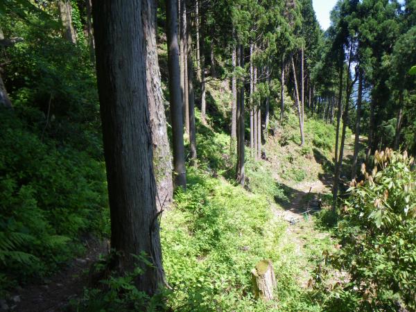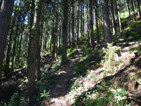 ⑤2回、林道を越しますが、2回目を越えたあたりから、急な樹林帯になります