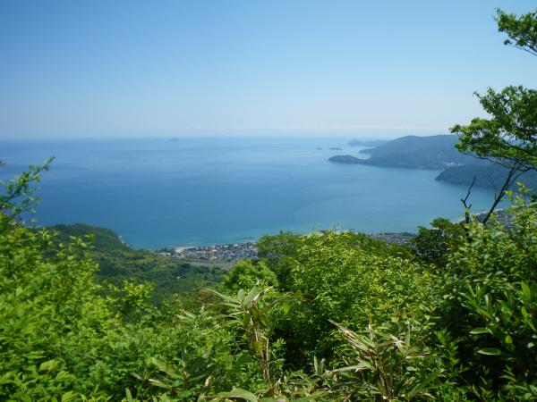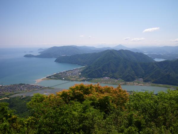 由良ヶ岳(ゆらがたけ・605m)は関西100名山の一つで丹後の由良海岸の背後にそびえる西と東の双峰の山で、地元では丹後富士と呼ばれています。江戸期には虚空蔵ヶ岳とも呼ばれた修験道の聖山であり、今も東峰頂上に小さな祠が残っている。西峰頂上から眼下に天ノ橋立、東峰頂上からは由良ガ浜、由良川、青葉山を望むことができる展望抜群の山です。