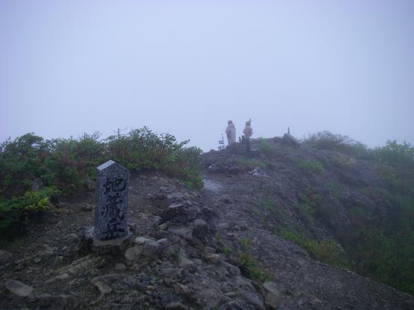 女人堂から頂上までの道が雪渓に覆われており、ガスが出てくると大変迷い易い。