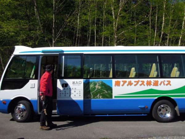 6月半ばからは仙流荘から北沢峠までバスが開通しますが、現在は北沢峠手前の歌宿までです。