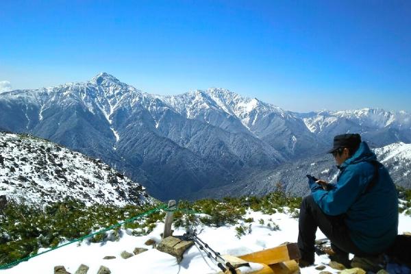雪化粧したきれいな周囲の山々を眺めながら登ることができ、