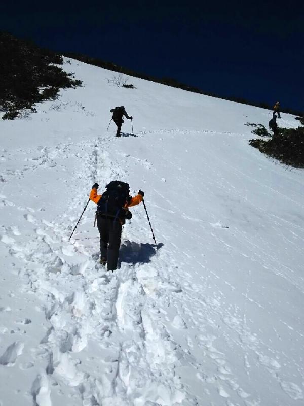天気は良かったもののアイゼンやピッケルの装備がないので、と途中で引き返された方もおられ、
