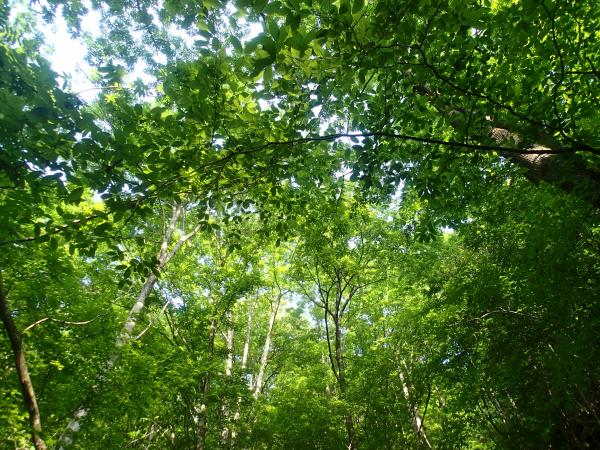 しばらくは樹林帯歩きで涼しく、新緑がまぶしかったです。