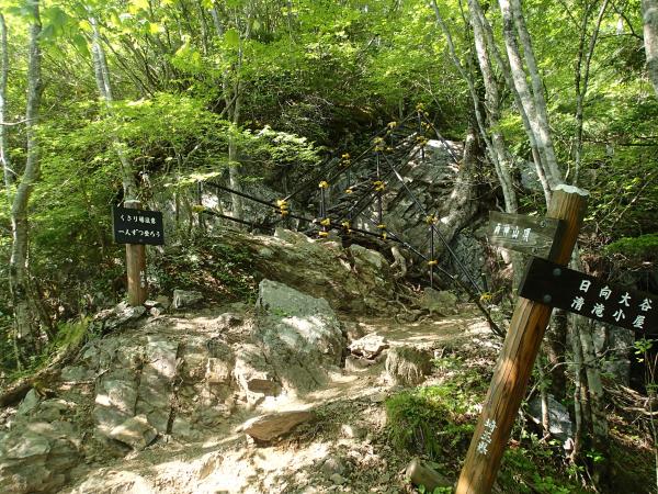 - 日向大谷口(30分)会所(80分)清滝小屋(90分)剣ヶ峰(120分)会所(20分)日向大谷口
