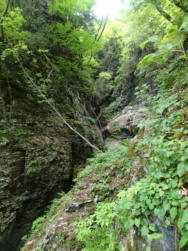 下山は七滝沢道から。険しい渓谷沿いを行くルートで一つ尾根を挟んだだけで雰囲気が一変します。