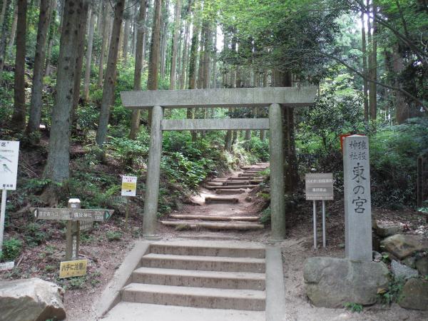 - 猿投神社駐車場=15分=御門杉(登山口)=15分=東ノ宮・西ノ宮の分岐=40分=東ノ宮=10分=猿投山山頂=15分=西ノ宮=25分=御杉門(登山口)=15分=猿投神社駐車場