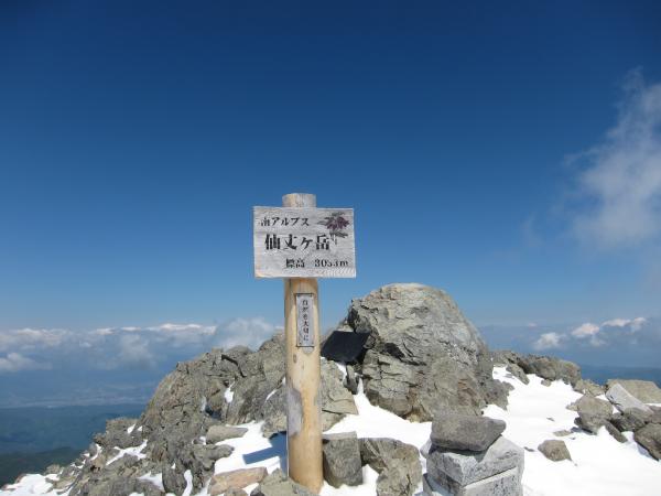 2日目:長衛小屋(150分)小仙丈ヶ岳(80分)頂上(40分)小仙丈ヶ岳(100分)長衛小屋(90分)歌宿(35分※バス)仙流荘