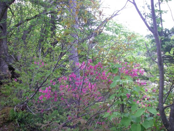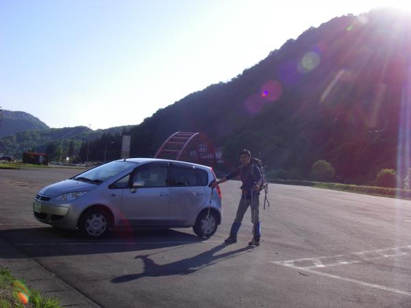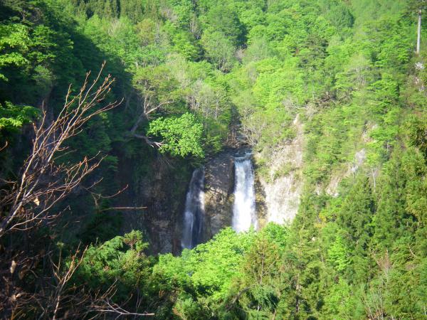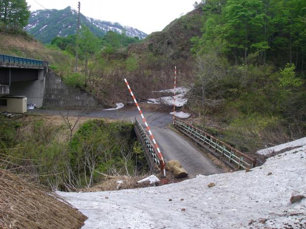 下山時に渡渉地点から少し行ったところに大きな林道がり、それに沿って歩いていくと県道385号線に出れます。残雪期に時間短縮する為には持って来いのルートです。