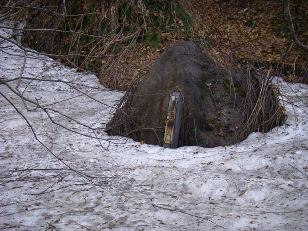 - 残雪期だったので登山道は雪に埋まっており、はじめのムジナ沢登山口から渡渉地点まではかなり迷います。実際、何度も迷いました。ただ、地元の方が付けてくれた赤の丸印と赤テープを見落とさないようにすれば、行けます。