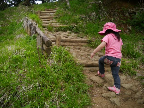 登山口から登山道を見上げると娘は自ら登り始めました。