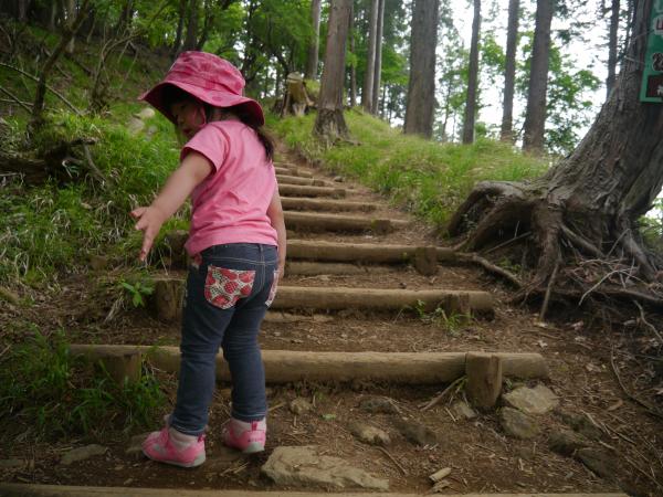 段差のある階段では、「なるべく段差の低いところを選んで登れば登りやすいよ」と教えてあげると、今度は娘が私に「ここから登れば楽だよ」と一段一段いちいち指示してくれそのたびに立ち止まります。