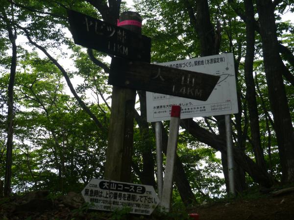 そして2時15分大山の山頂に着きました!ちょっとガスって景色は見えないなぁ。残念。