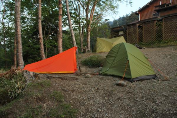 最近は軽いテントやウエアが数多く販売されていますので、特別な知識がなくてもけっこう軽くする事が可能になっています。湯沸かし中心の簡単な調理程度でしたら小型のクッカー鍋で充分だと感じますし、寝袋もダウンなどの防寒着を併用すれば、暖かくなってくるこの時期の2000m以下の山であれば厚手の寝袋で決してなくても快適に熟睡できます。