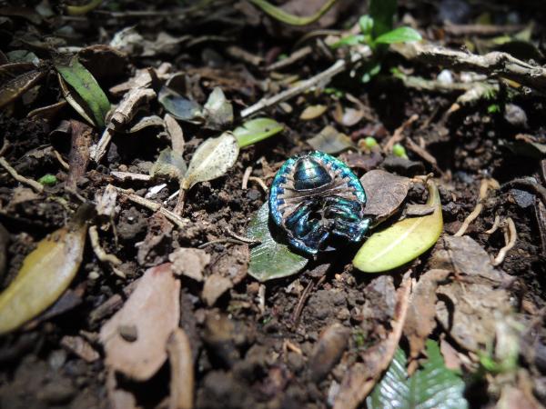 地面には虹色の幼虫の抜け殻を多く見つけましたが成虫を見つけることはできませんでした。