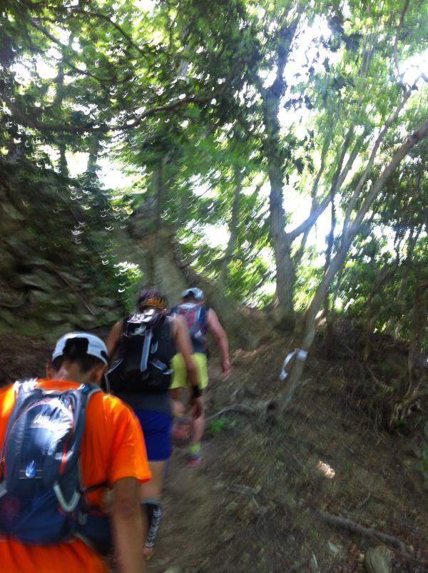 技術的に難しいところはないのですが「ひたすら下って、ひたすら登る。」自分の中ではレース中で一番キツイポイントだったかと思います。西塔(釈迦堂)辺りまで続く下りは巡拝の道なので石段やコンクリート。青龍寺から給水所まではトレイルです。