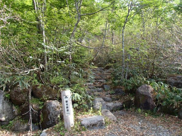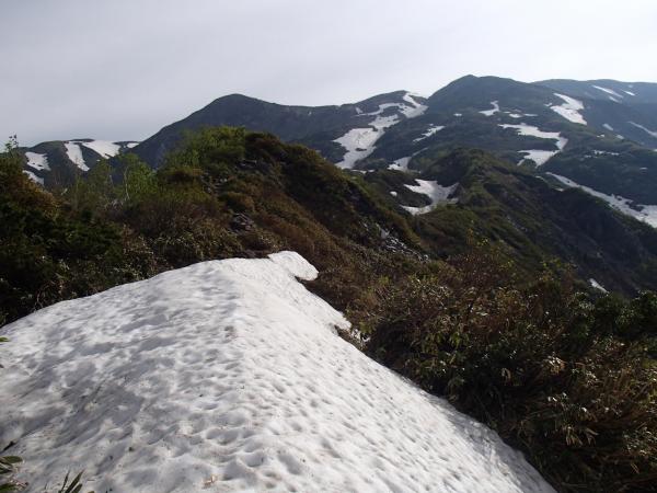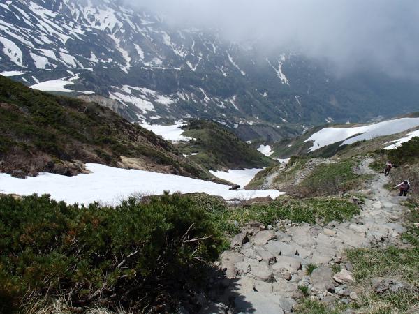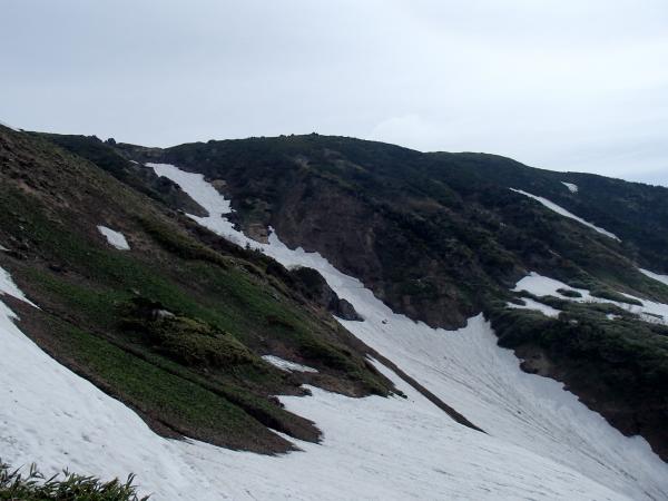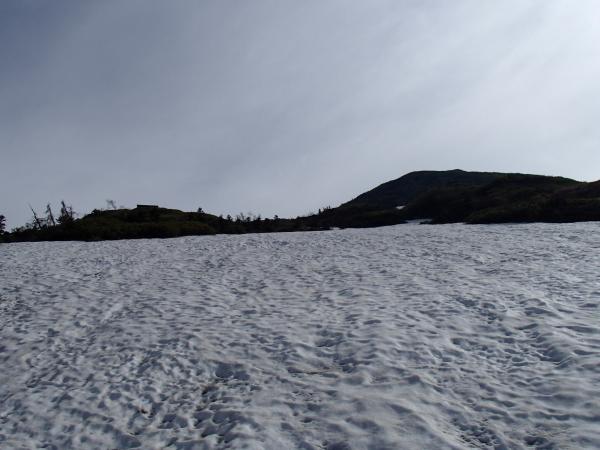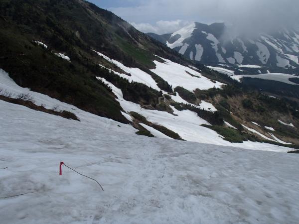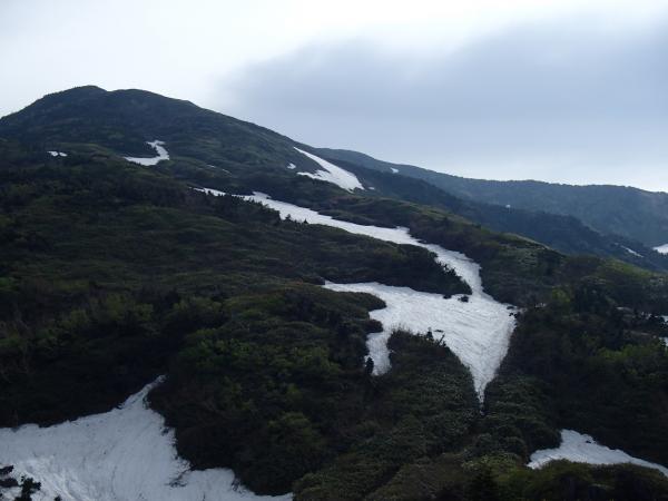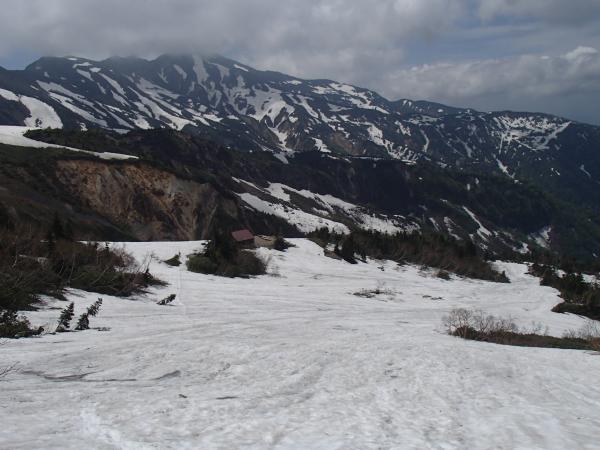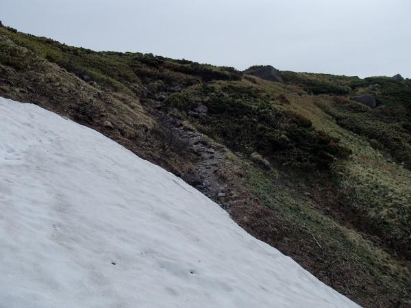 - 観光新道:殿ヶ池避難小屋手前より残雪 ルートは明瞭