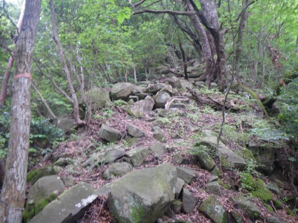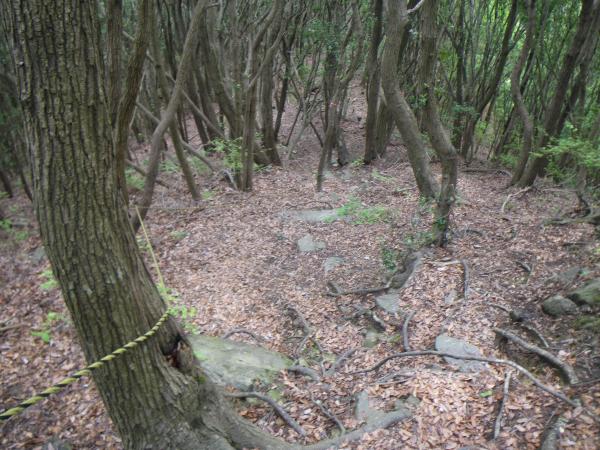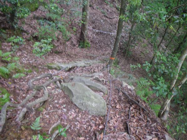 ⑬燈明ヶ岳から不動明王像間も岩交じりの道で急坂ですので、スリップ注意