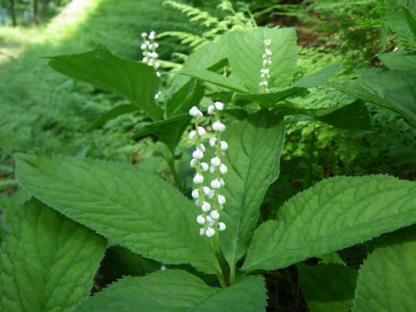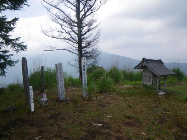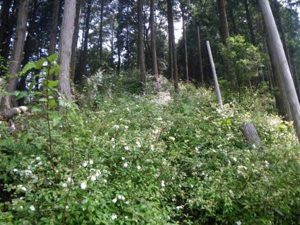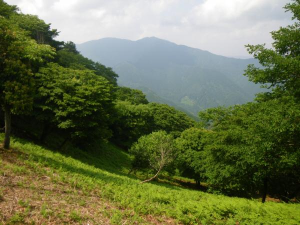 岡山県側のベルピール自然公園から遊歩道を使えば、すぐに終わりそうなので、下部の武蔵山牢跡から登りました。正直、植林帯の中の林道歩き、暗いスギの植林帯を抜けるジグザグ道とコースは気持ちの良い山歩きとは言えません。一般的な千種からのコースも同じような感じです。しかし、頂上の正面には後山~駒の尾山の稜線がきれいに見えます。この道だったら、素直にベルピール自然公園から登るだけでいいと思いました。それでもヤマシャクヤクが見れて、収穫でした。