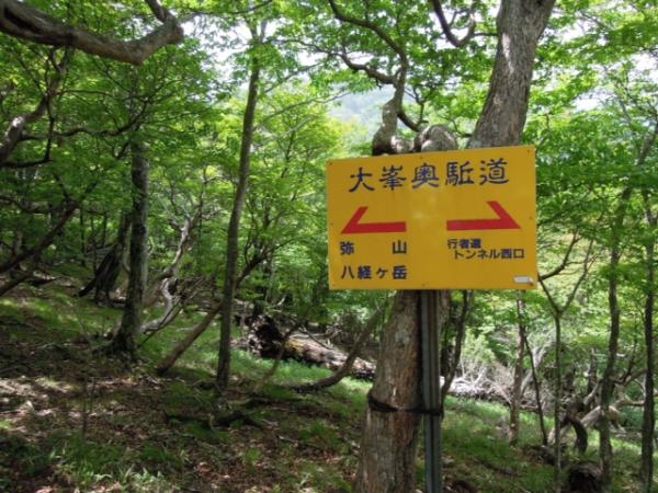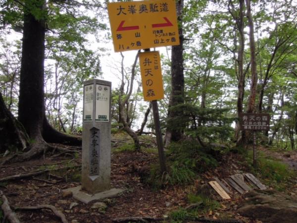 行者還トンネル西口ー50分ー奥駆道出合ー60分ー弁天の森ー30分ー聖宝の宿ー40分ー弥山ー15分ーハ経ヶ岳ー弥山(テント泊)
