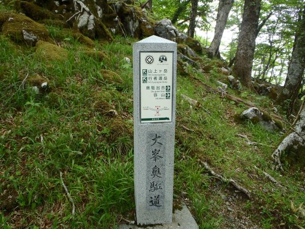 - 国道309号 90番ポスト(120分)行者還小屋(20分)行者還岳(60分)