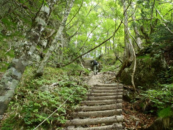 小屋から行者還岳へは、ハシゴ・クサリがありますが