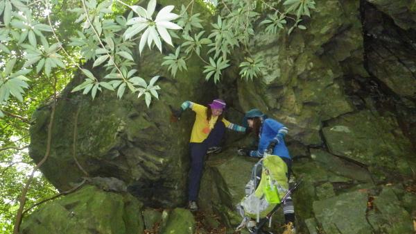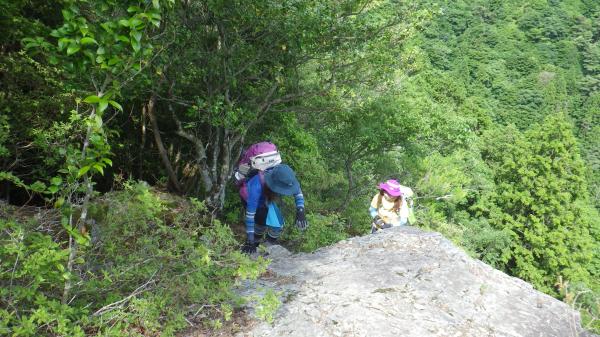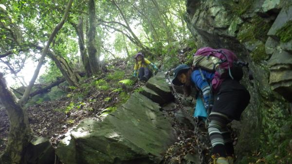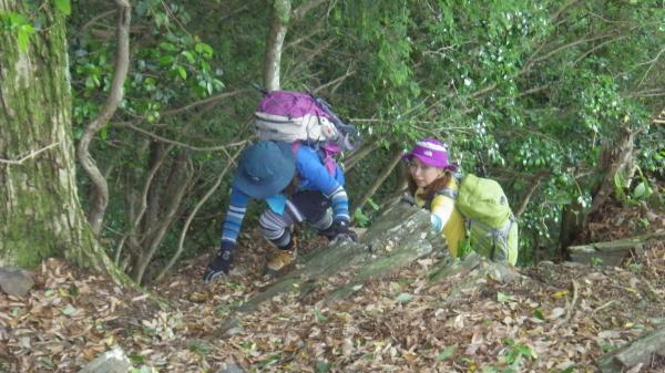 しばらくはなだらかな変哲のないルートですが、迎え行者を過ぎた辺りから行場らしい雰囲気が出てきました。滑りやすい下りが続きますが、手掛かり、足掛かりはしっかりしているので慎重に行動すれば問題ないです。五光の滝を過ぎると登り返しです。右に曲がる案内を見落とさないように。