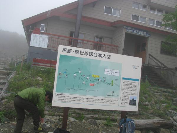 - 八方池山荘(60分)八方池(60分)上の樺(60分)丸山ケルン(60分)唐松岳頂上山荘(20分)唐松岳(120分)八方池山荘