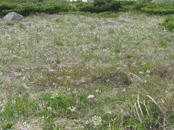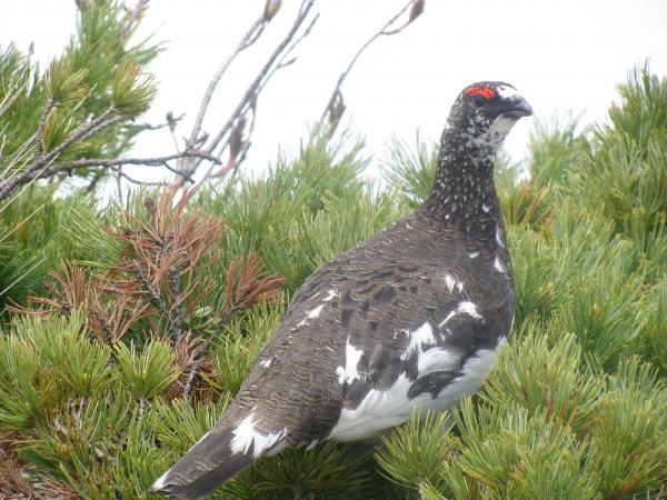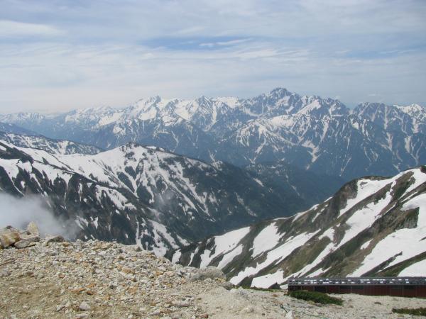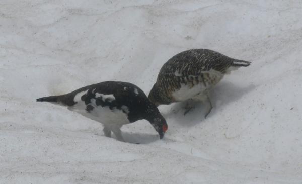 このコースは稜線までは白馬岳はじめ後立山の展望。稜線に出たところで突然開ける剣・立山の大展望が魅力。朝からガスや雲が多く、期待していなかったものの、稜線付近だけ好天に恵まれました。また雷鳥が多く、繁殖期のためか、縄張り争いをするオス同士や、仲良く餌を啄ばむ番も撮影できました。日帰りではありますが、北アルプスを堪能できました。