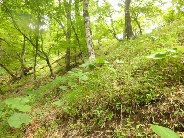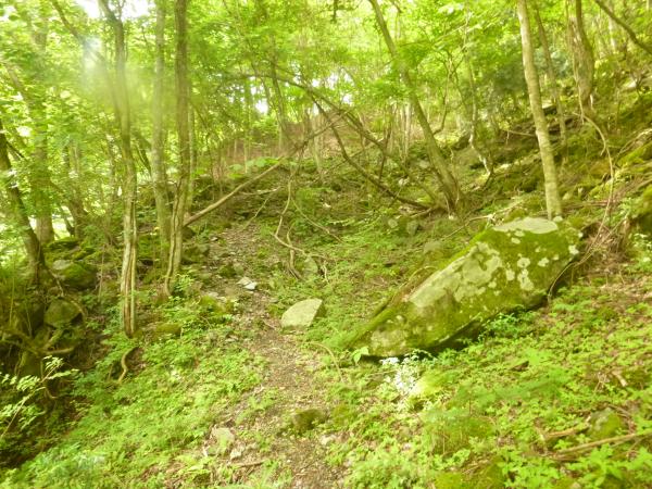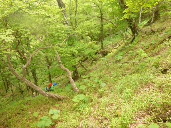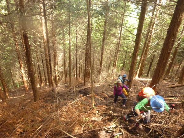 ○ヤタ尾根は傾斜が急な下り坂が続きます。