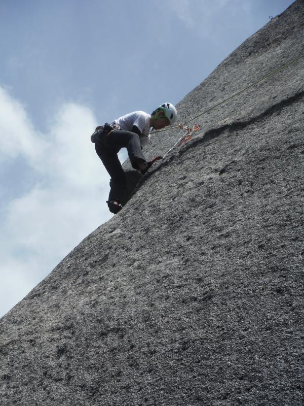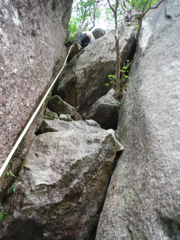 ここからが核心のピッチ、そして巨大な花崗岩の登りをフリーで越えていきます。