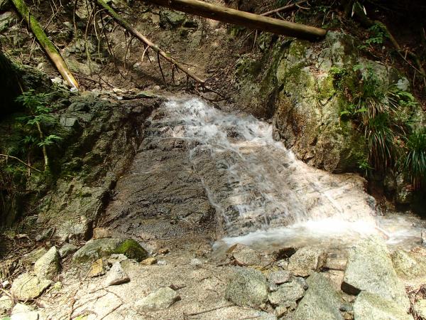 後半の沢から尾根へのとりつきを見逃してしまい、最後は木を掴みながらよじ登ってルートに復帰・・