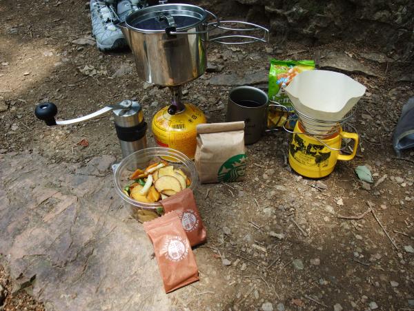 山頂でお昼休憩の間はパタゴニアのフーディニを羽織っていましたが、