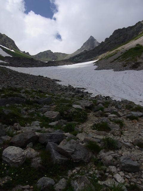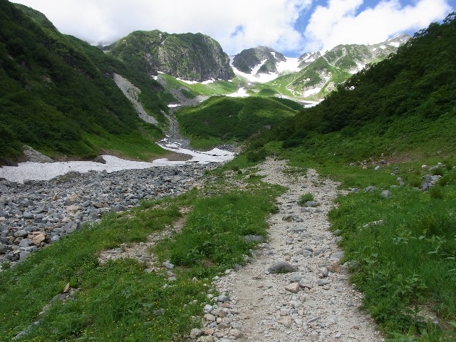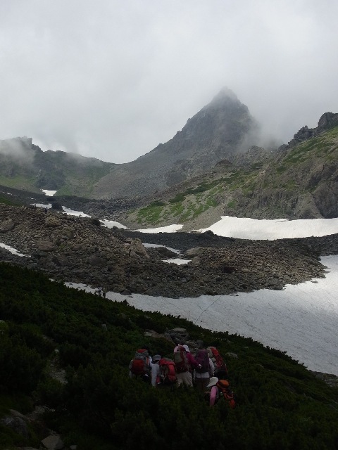 グリーンバンド〜殺生小屋の間、数十m残雪あるもののアイゼンは必要ありません。