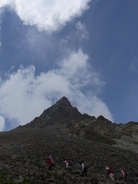 槍ケ岳の肩からの往復は渋滞する事が多いので、登るタイミングを図ってください。