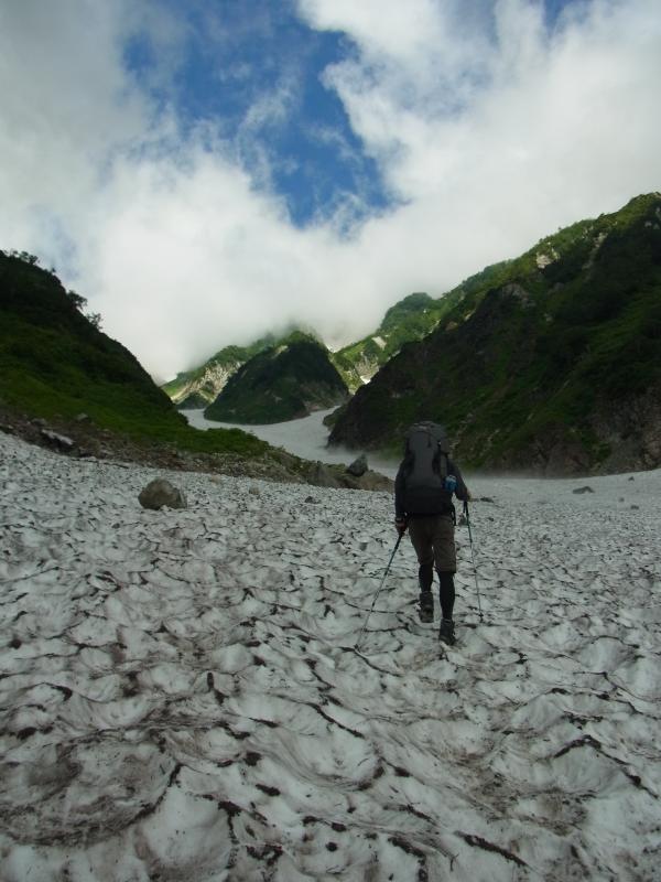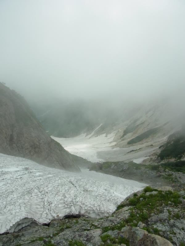 - 雪渓は落石にかなりの注意を!この日も何度か落石がありました。
