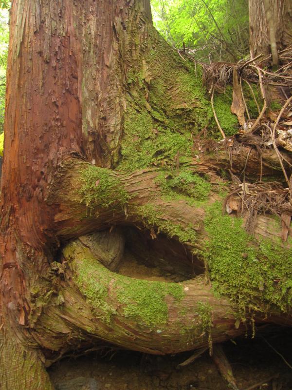 そこからさらに奥へ進むみますが、なかなかの急登でした。途中、俵石があります。溶岩が固まってできたそうですが、なかなかおもしろい形です。