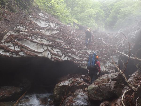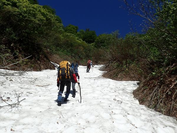 こちらも雪渓がつまっているので、すべらないように慎重に下山。