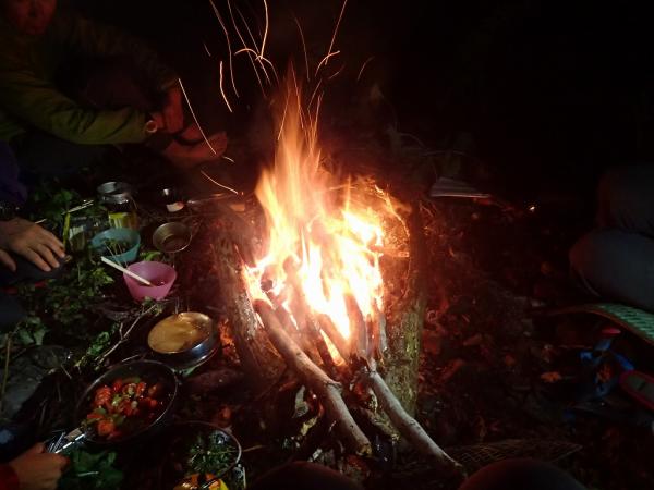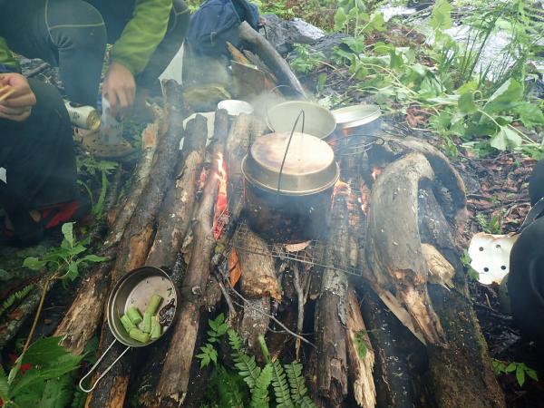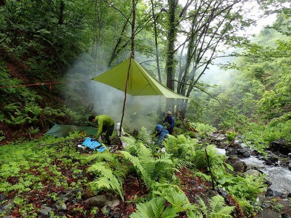 タープの下で焚き火も楽しめ、夜には雨もやみ星空を堪能。