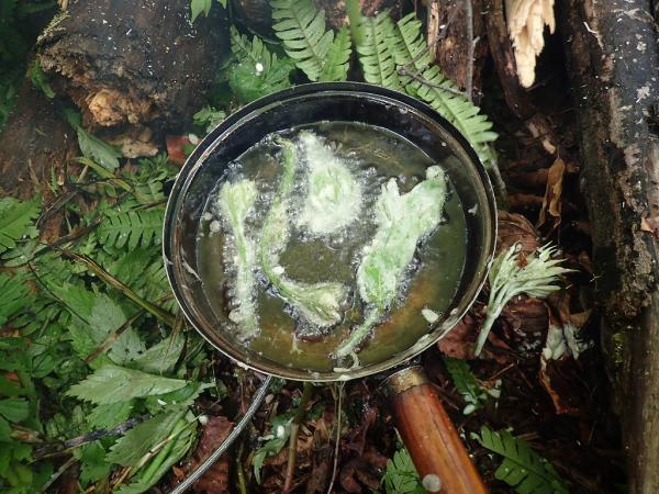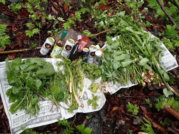 ウド、ウルイ、アイコ、ミズ、ヤマブドウの葉など山菜がかなり豊富に採れたので、