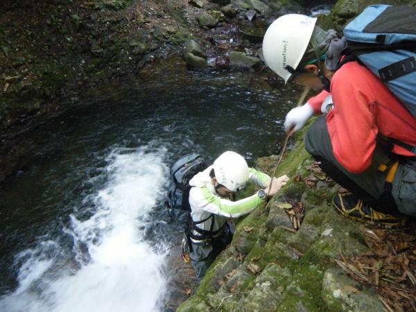 コースタイムが読み切れず、ロープ出しが必要そうな曲がり滝10mのみを高巻きしましたが、後の滝は全部登りました。多分。
