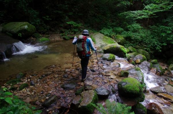桜谷コースは沢沿いで何度か沢を横切るルート。夏場にもオススメです。