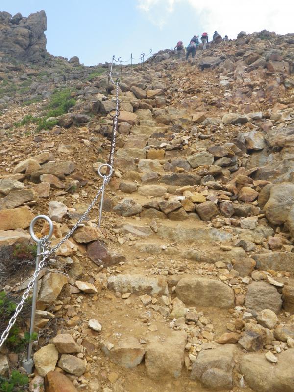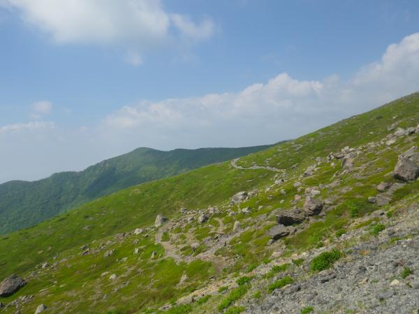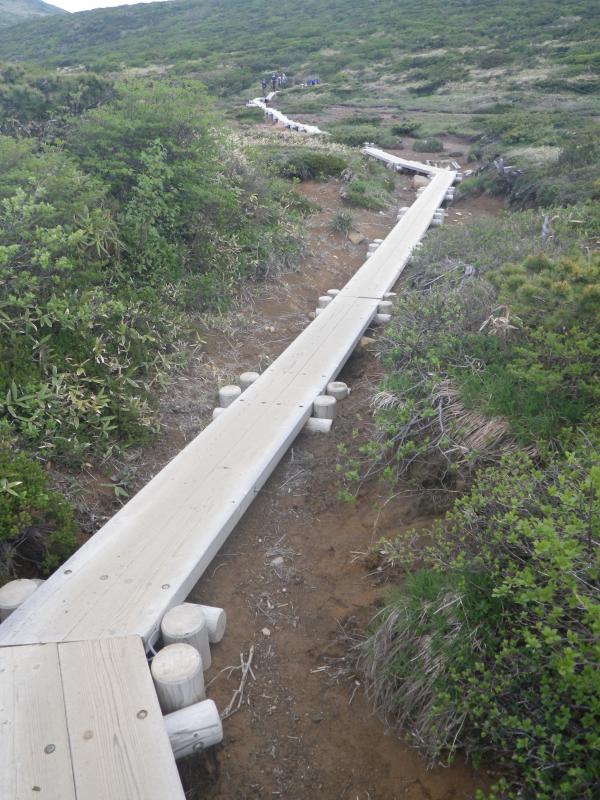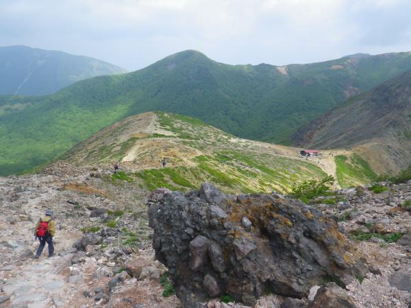 - ロープウェイ山頂-(20分)-茶臼岳-(30分)-峰の茶屋避難小屋-(30分)-朝日岳-(30分)-清水平-(30分)-三本槍岳-(60分)-峰の茶屋跡避難小屋-(40分)-峠の茶屋