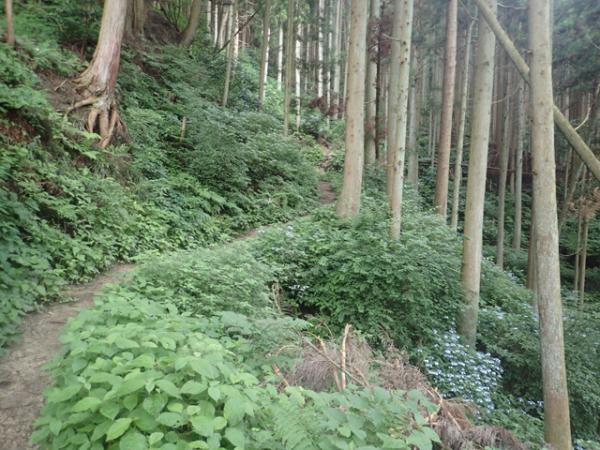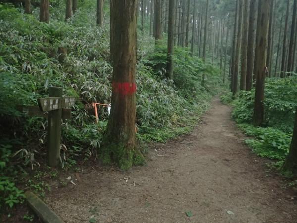 二番目の分岐からはかなりの急坂で登りきると最初の分岐を右へ行った時にでる道へでました。