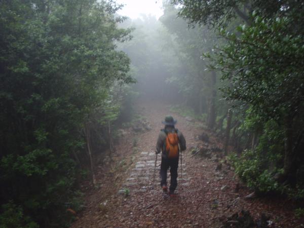 スタートから土砂降りのため、景色は半ば諦めていましたが、頂上付近で雲が切れ、伊勢湾の遠望を楽しむことが出来ました。