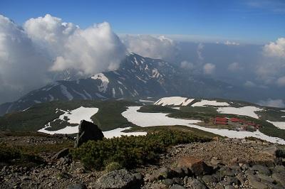 - 山頂までは雪渓が残っていました。御池めぐりも雪渓あり、ツガザクラ、コイワカガミ、が群生です。