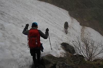 砂防新道のほうが 雪渓多し。ゆきが微妙な場所もあり、今週は解けると逆に歩きにくい。