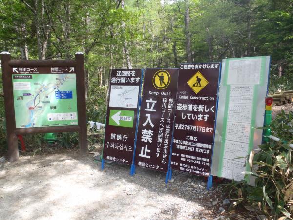 - 田代湿原~田代橋間には「梓川コース」と「林間コース」がありますが、林間コースは7月17日まで工事のため立ち入り禁止になっています。