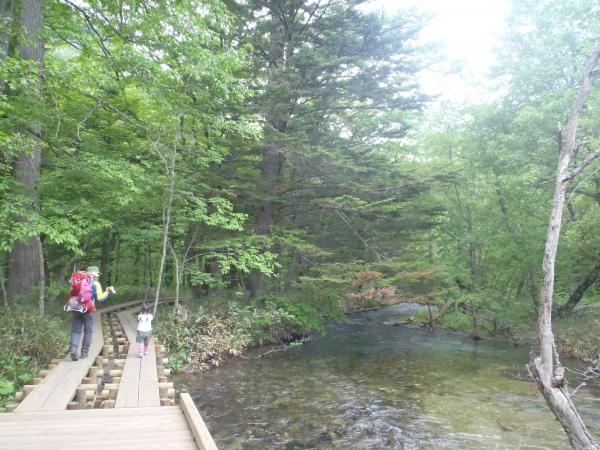 大正池から河童橋までは木道や幅の広い砂利道が続きとても歩きやすかったです。